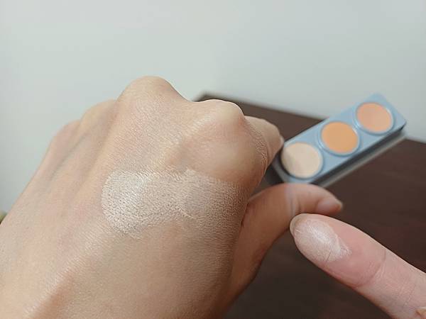 光影塑形三效粉霜有三個色調,亮色於T字部位打光,在黑眼圈暗沉處能提亮遮瑕,以自然色作基底均勻膚色,深色可加強陰影處,提升輪廓立體感,一盤三色自由調配的設計很實用!